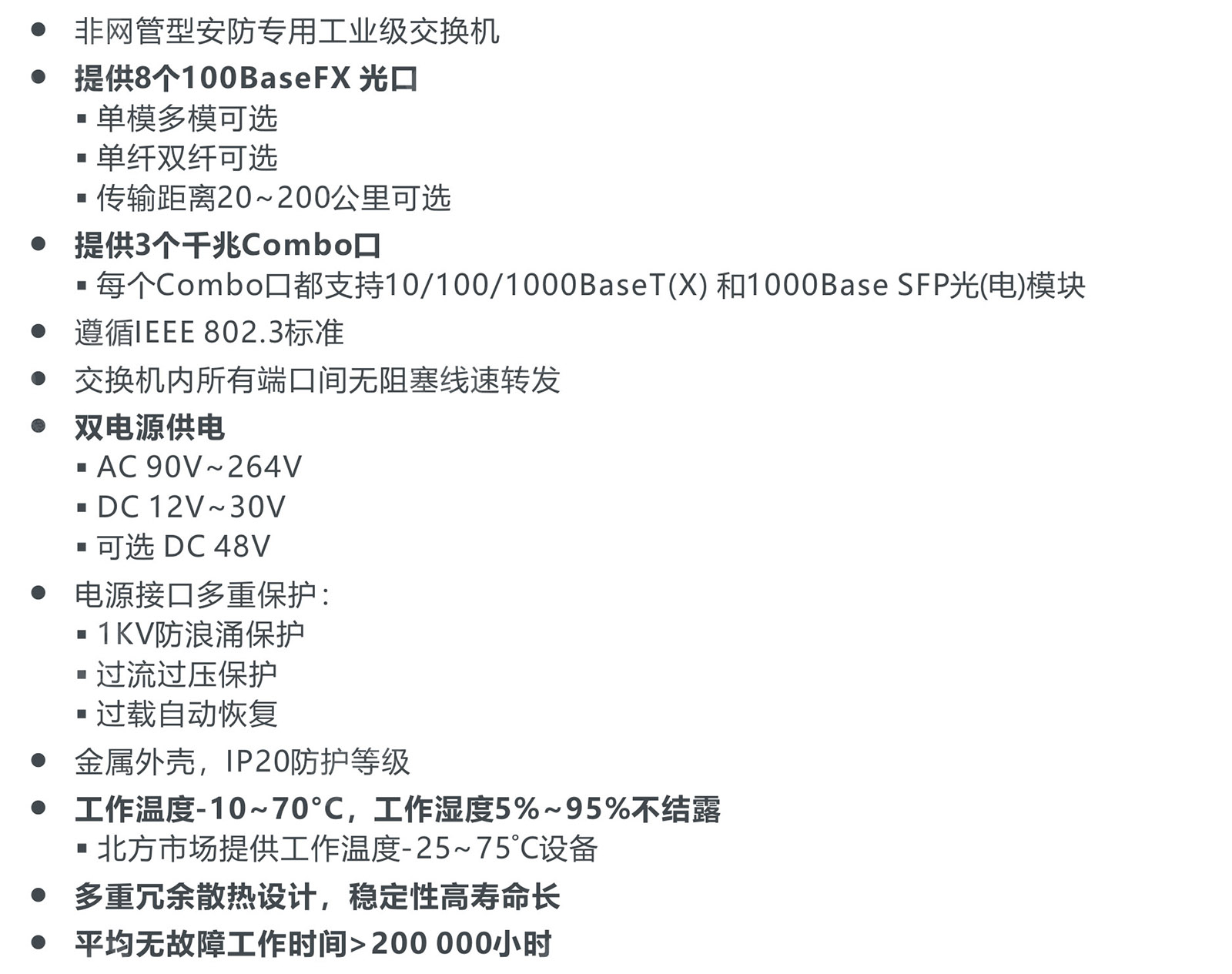 S111F-3GC8S 8光3光电复用口 安防专用工业级以太网光纤汇聚交换机