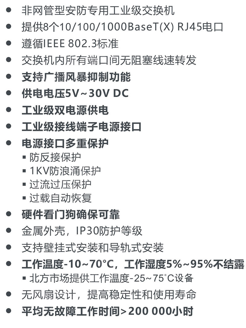 S108GA 千兆八电口安防专用工业级以太网交换机