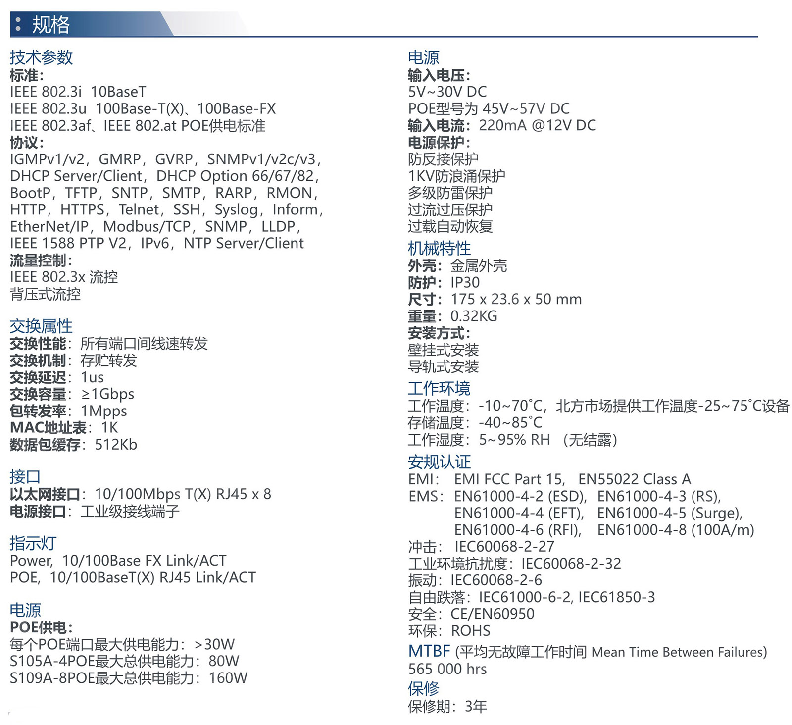 一光八电8 POE百兆交换机
