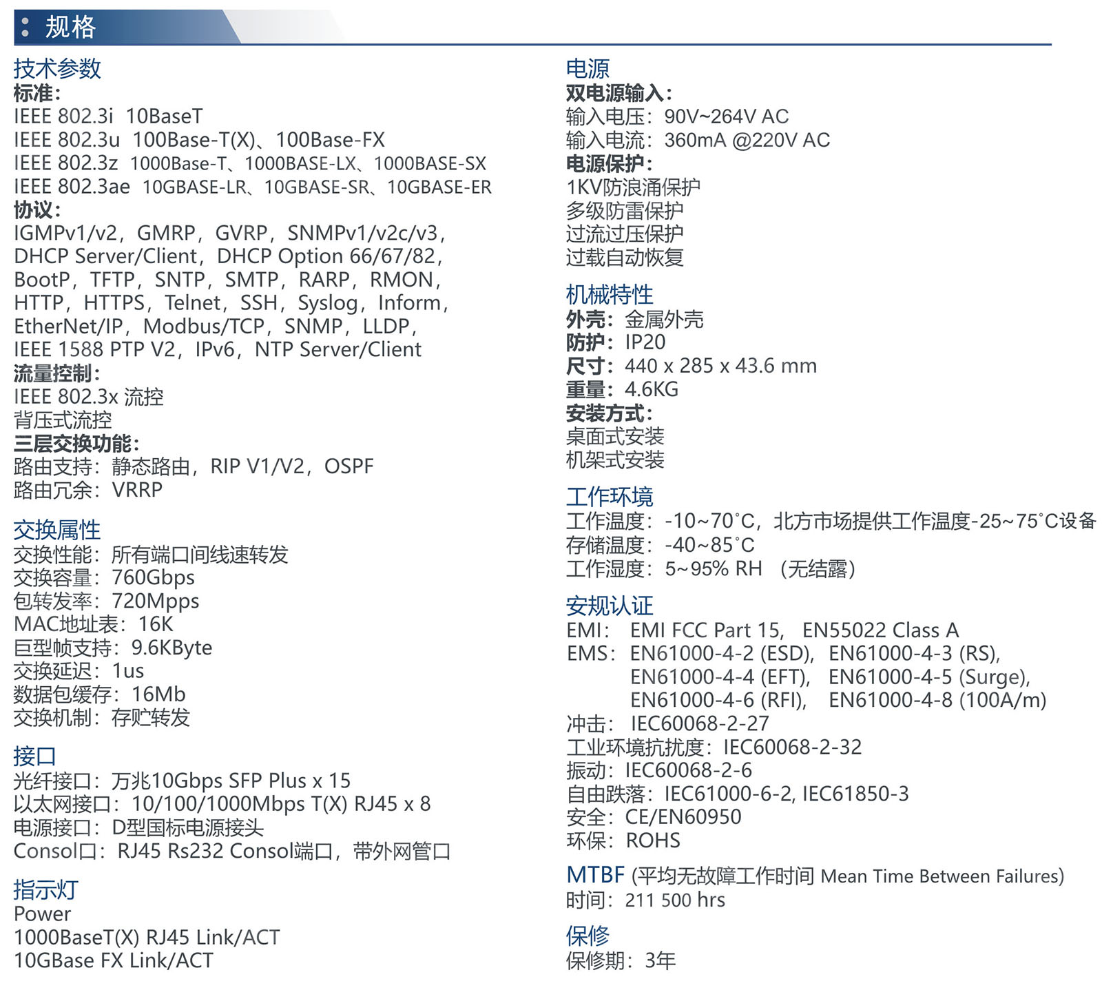 S316TF-15TF 万兆核心 工业级以太网交换机